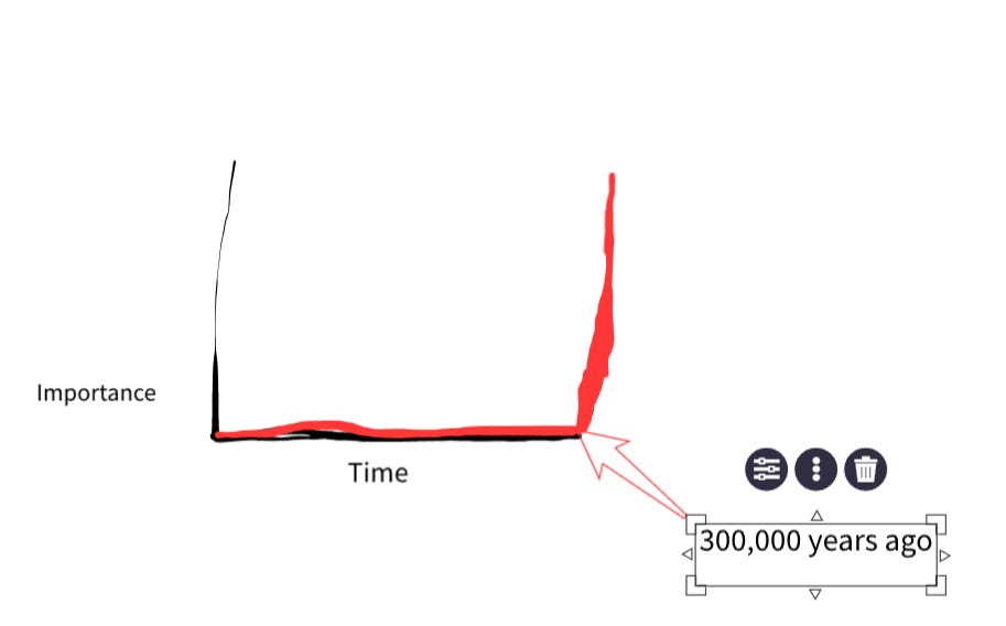 Important stuff started happening in the last few hundred thousand years. Before that, nothing that happened in the world mattered much because we didn’t yet exist.