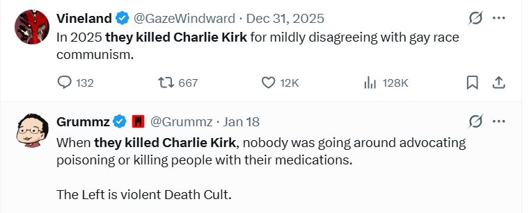 A very common line in the wake of the death of Charlie Kirk was some variation of “they killed Charlie Kirk,” or “the left killed Charlie Kirk.” People constantly say stuff like, “the left did X,” and then point to a thing that either one or a small number of left-wingers did. Some examples (many of them taken from Richard Hanania’s excellent article):